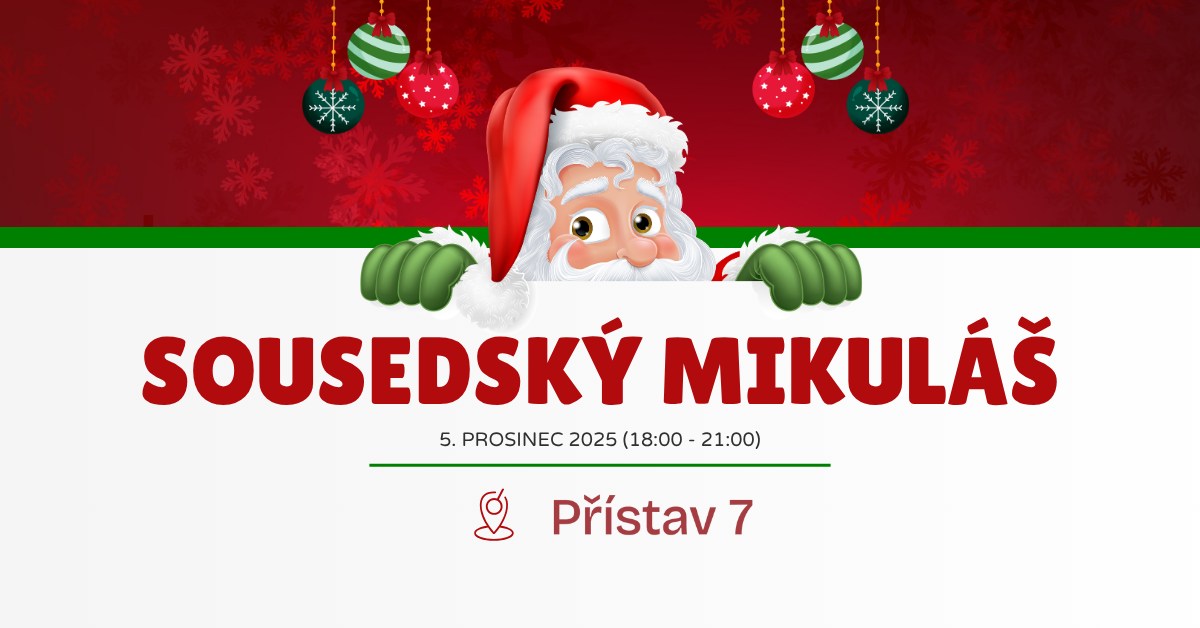 If you haven’t planned a St. Nicholas visit for your kids this year, don’t worry! Our neighbourhood St. Nicholas will be coming to Přístav 7 – and everyone is welcome. St. Nicholas is coming at 6:30 PM. Please bring clearly labelled gifts for your children by 6:20 PM. St. Nicholas, along with a friendly devil and an angel, will make sure each child receives their present. We’ll have mulled wine for parents and you are welcome to bring some snacks to share. Free Entry